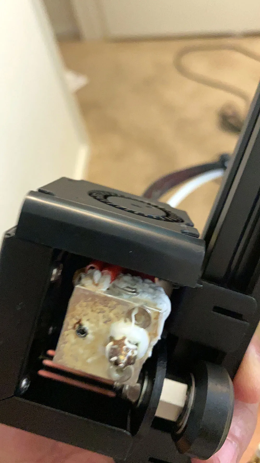 I am striking out with all these attempts. I took it apart, which was a good exercise. It helped me get more familiar with the printer. Cleaning wasn’t too difficult, just time consuming. I cleaned out the filament and put the printer back together. Here we go, attempt 4.