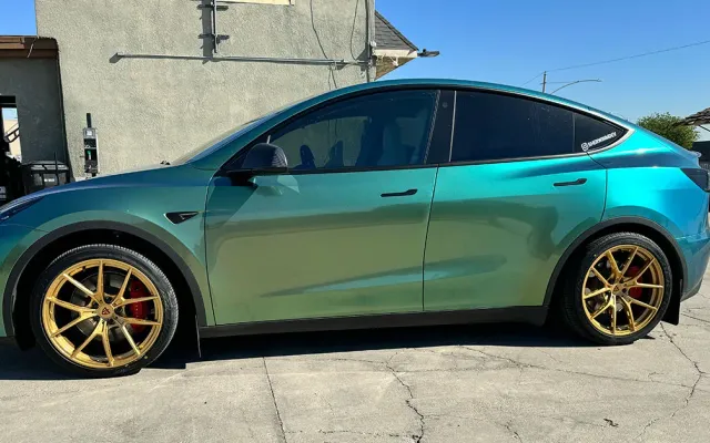 Out with the UberTurbines, in with the Gold Champagne! Sherwin breaks down his new RVRN forged wheel setup and Falken performance tires for the Model Y.