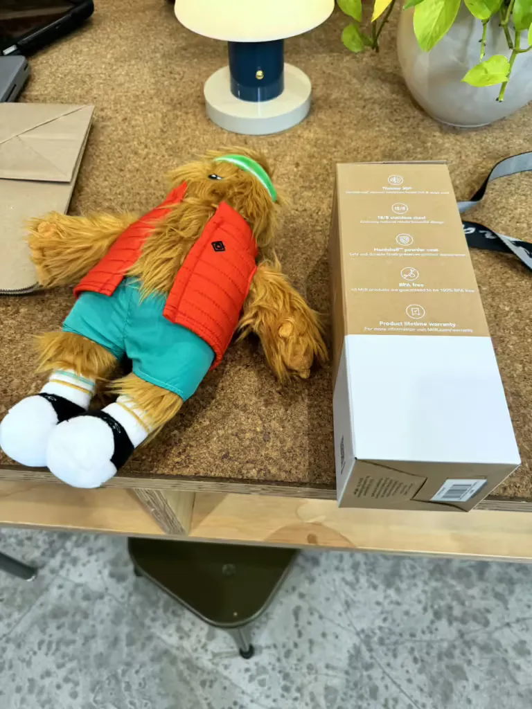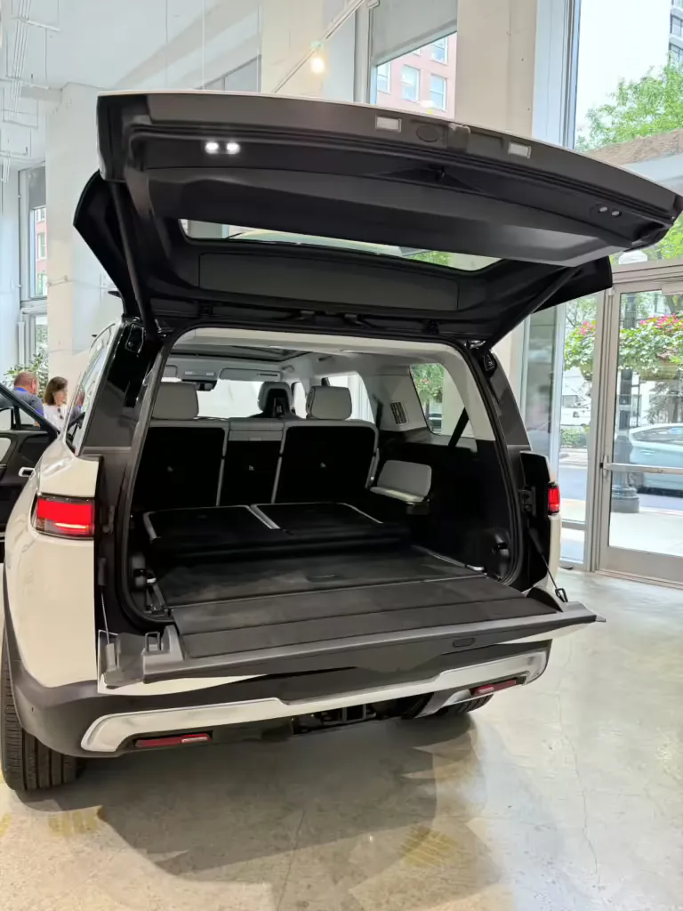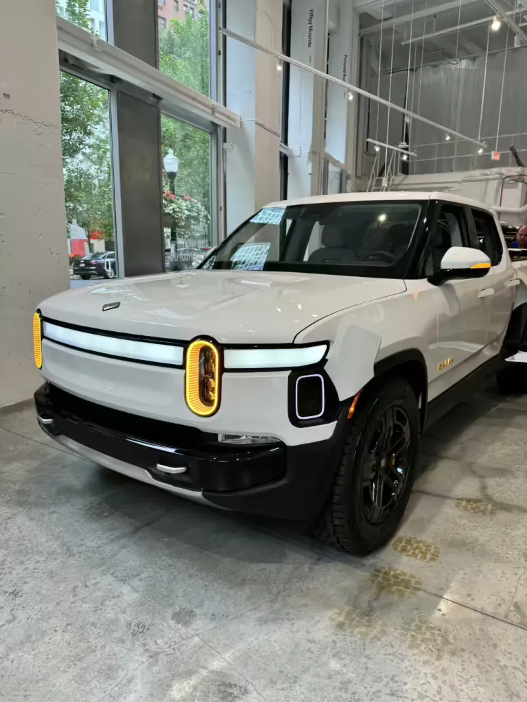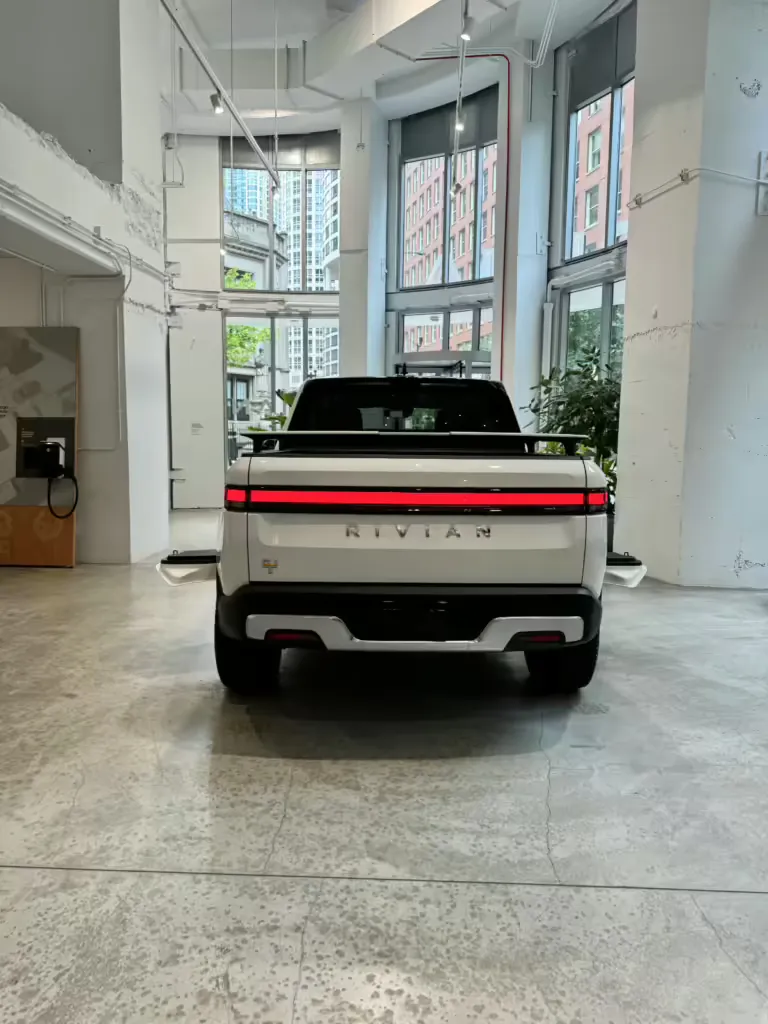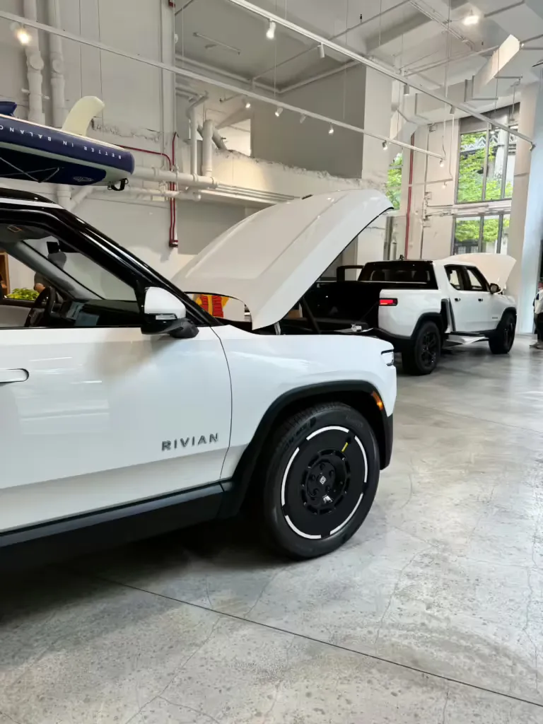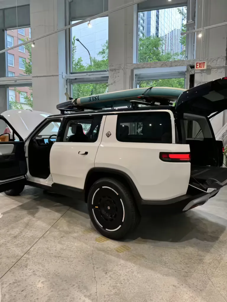 I arrived at Rivian and took some photos. There is a Gen2 R1S on display and Gen1 R1T. I missed my truck. This is the first time I am seeing the white paint with AT tires. It looks very nice. I ended up buying a Gear Guard Gary plush toy and a bottle in Limestone color (to match my truck). I wanted to get a Chicago Rivian shirt but it did not come in Limestone so I held off. Maybe next time. Those two items already cost $87 yikes.