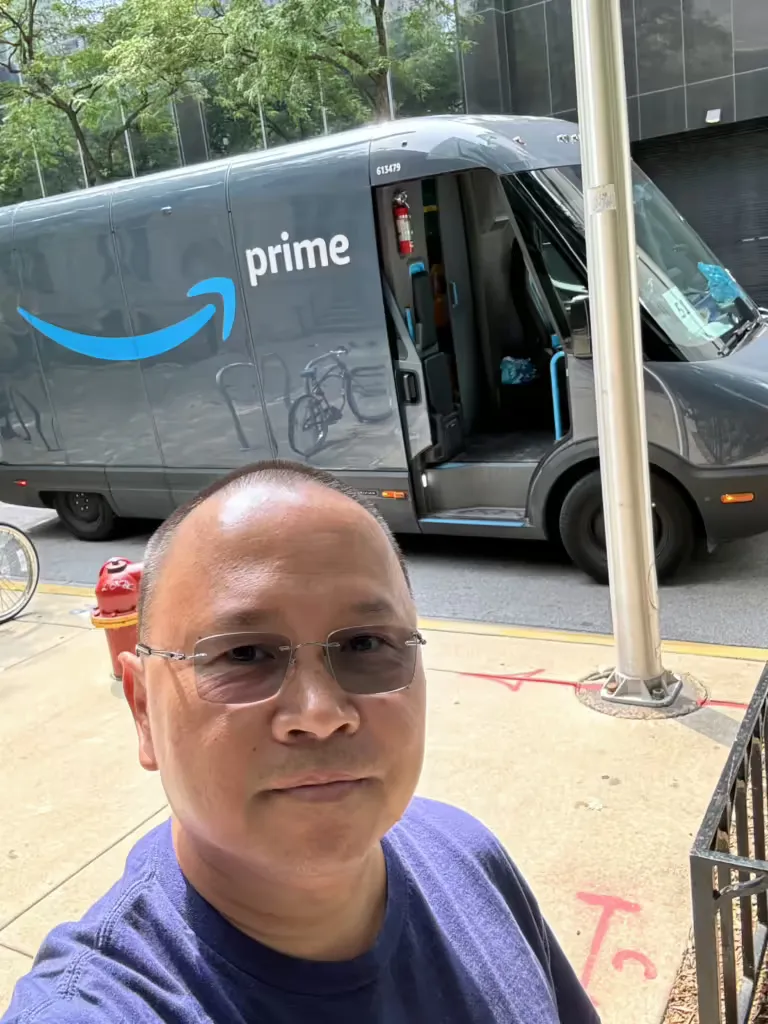 I left and walked around for a bit. While walking, I saw an Amazon Rivian EDV (electric delivery van). I am seeing more of these on the road.