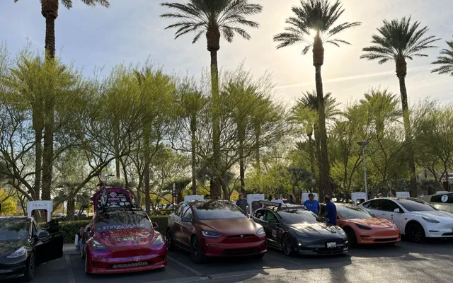 Sherwin joins a massive EV convoy to Las Vegas, tackling charging challenges in Baker and exploring the heights of Mount Charleston in the Model X Plaid.